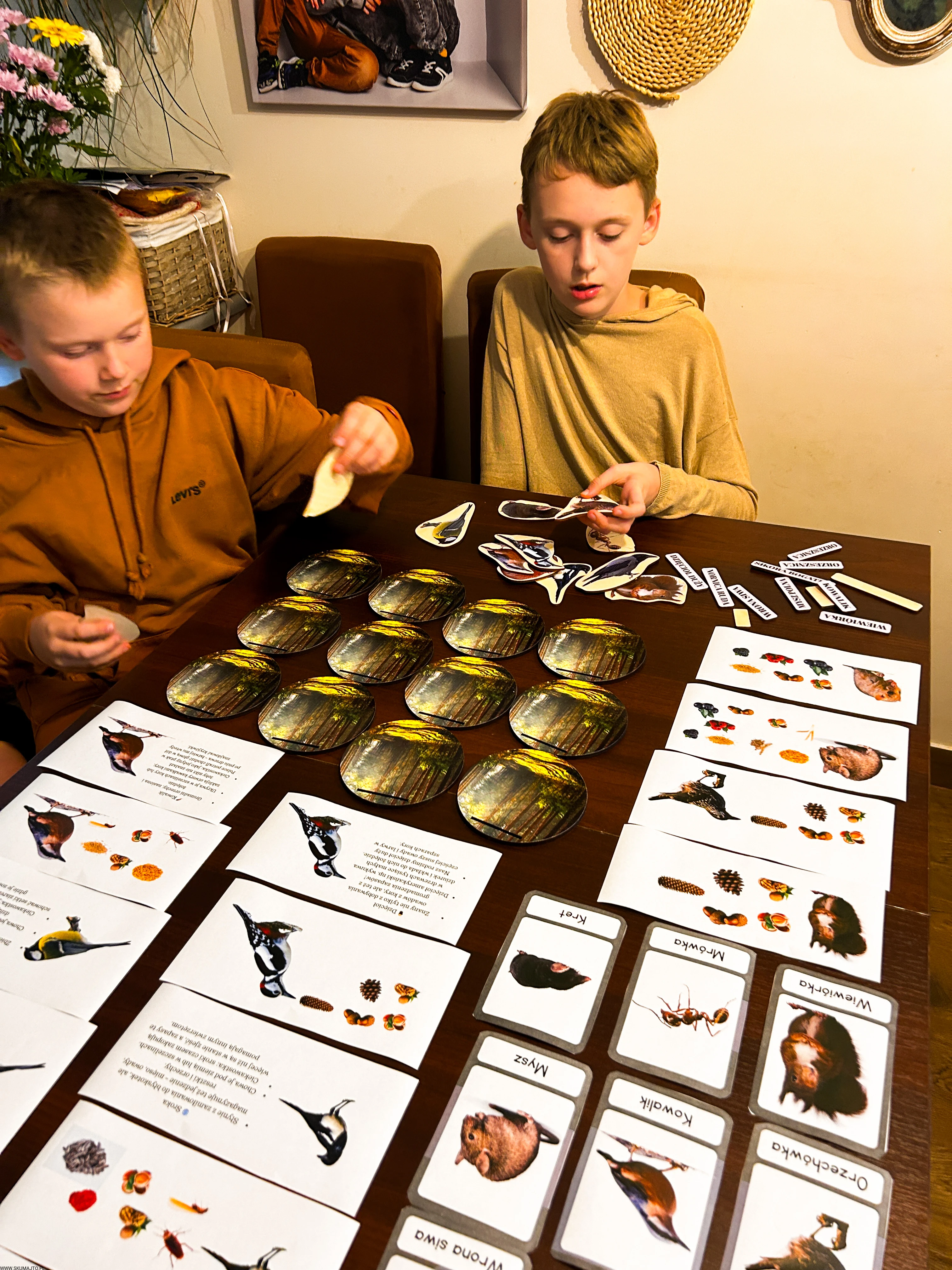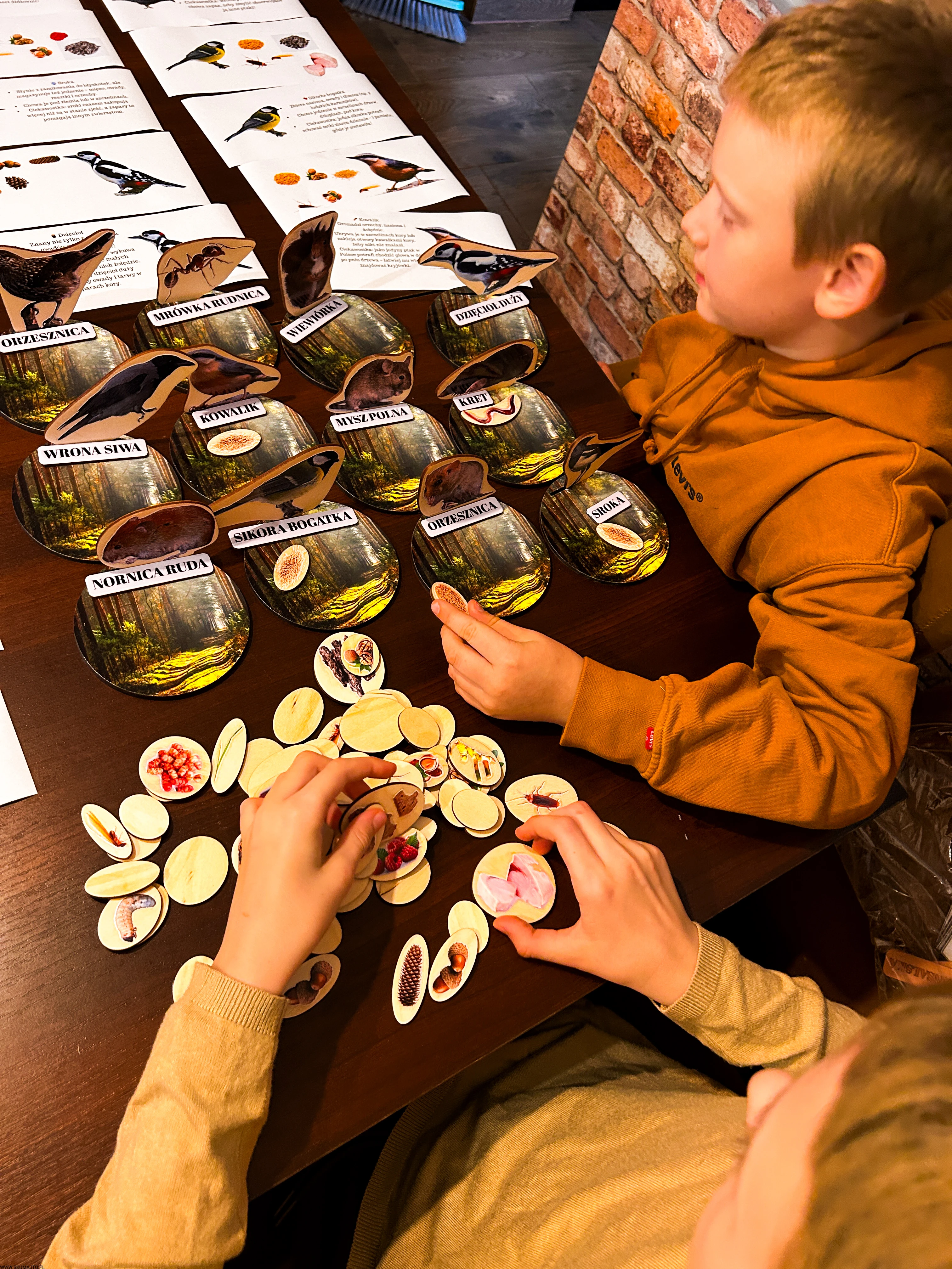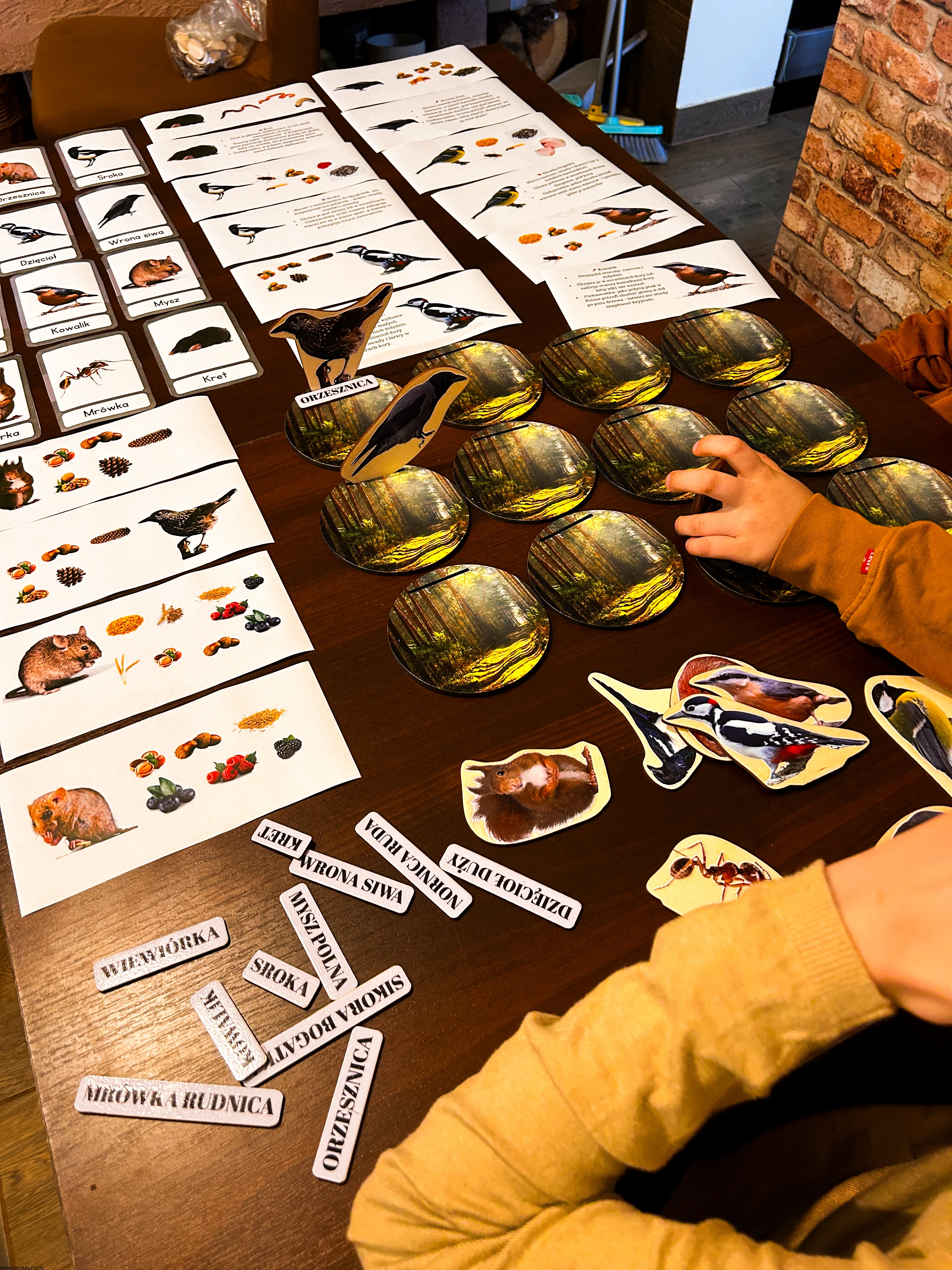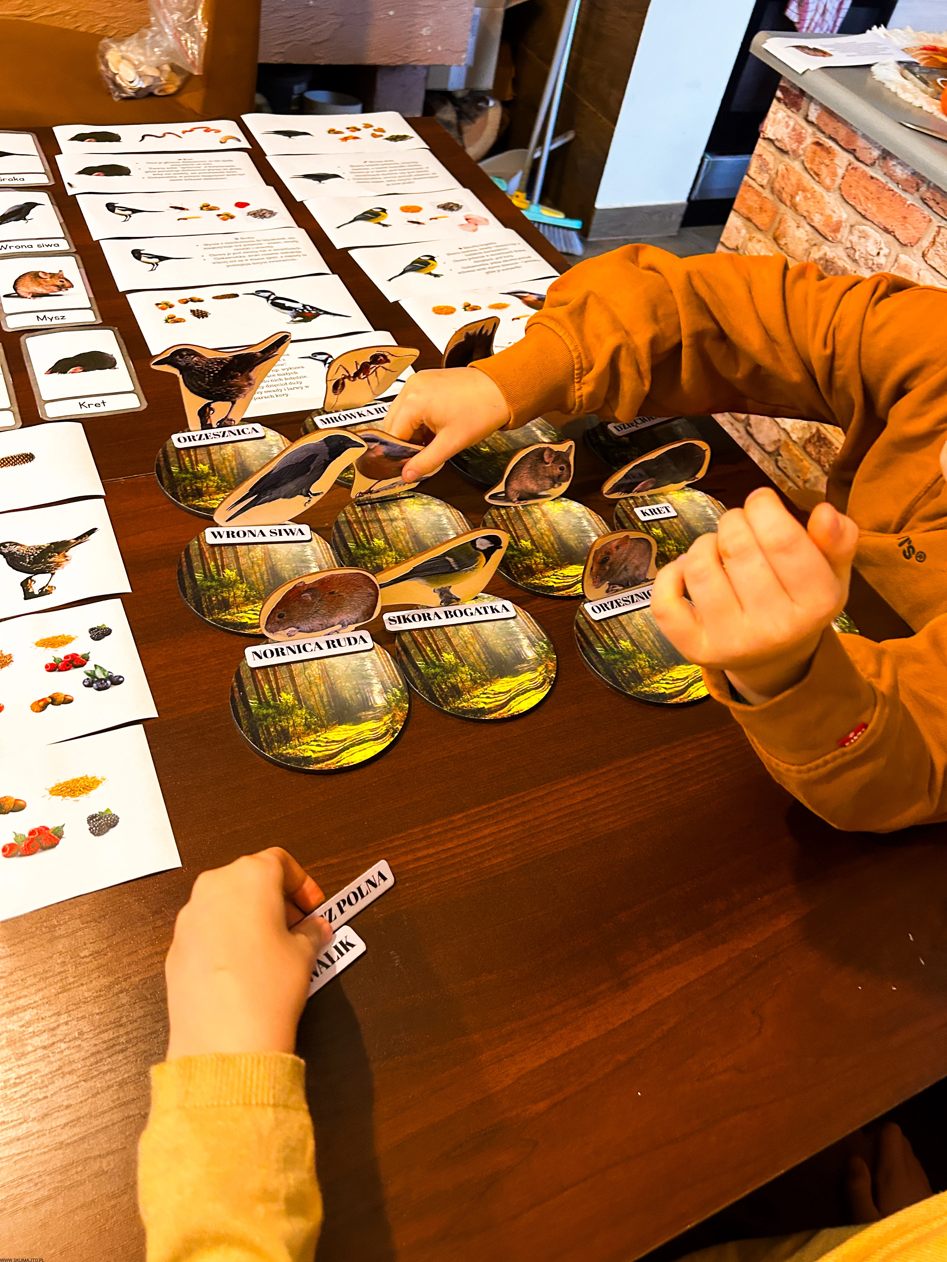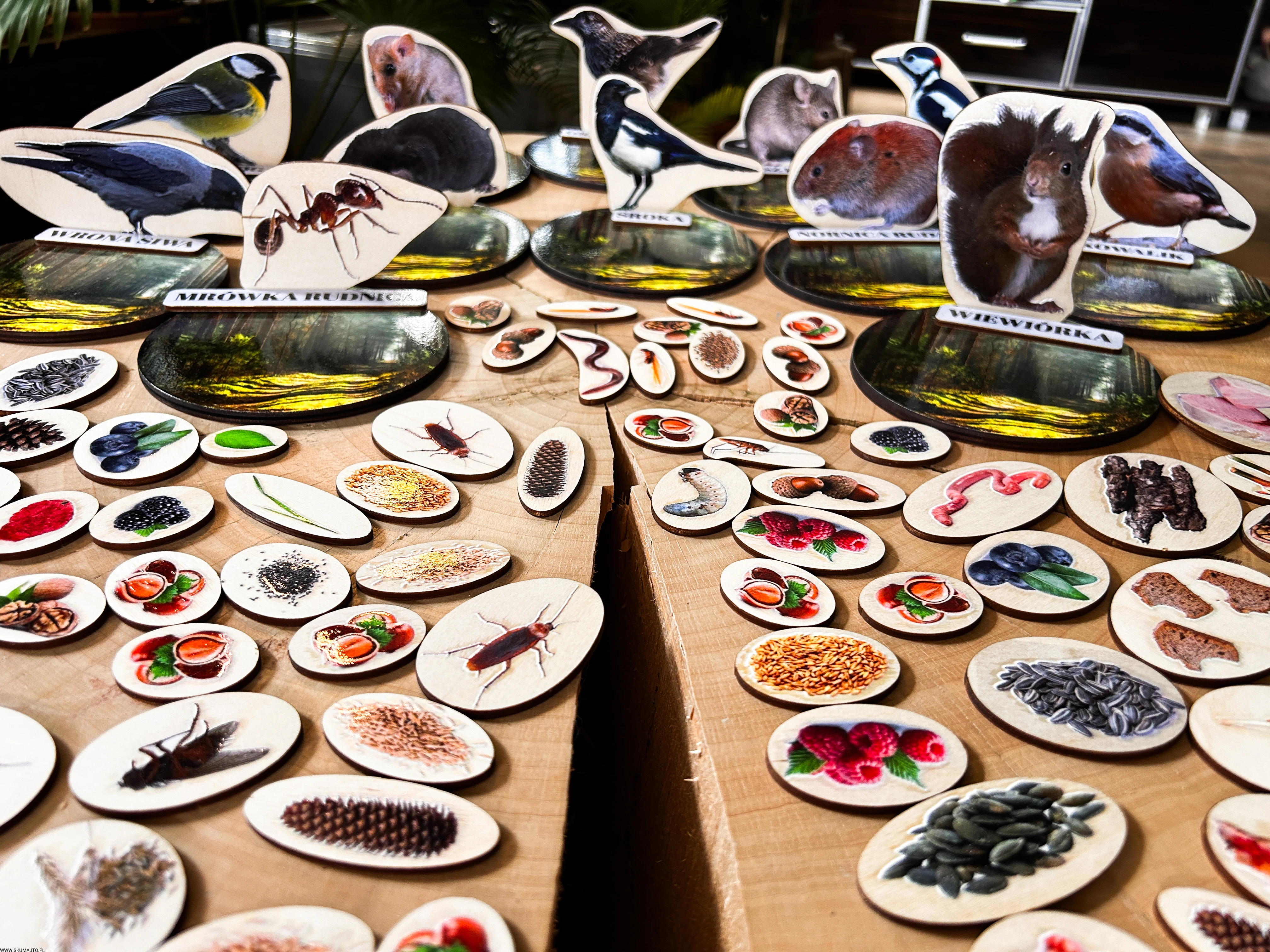 Każde dziecko dostaje jedno zwierzę i talerz – jego zadaniem jest znaleźć i ułożyć tylko te zapasy, które dany gatunek magazynuje.