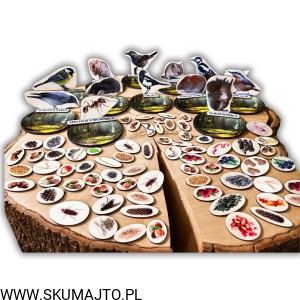 Ponad 70 elementów zapasów do dopasowywania – nasiona, owoce, żołędzie, szyszki, owady, larwy, orzechy i inne leśne „przysmaki”, które zwierzęta gromadzą na zimę. Wszystkie realistyczne, estetyczne i trwałe.