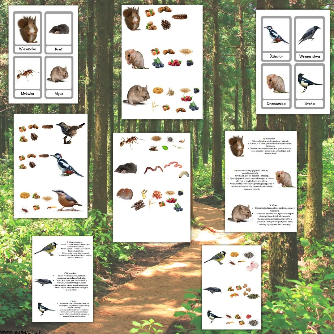 zwierzęta przygotowujące się do zimy, edukacja przyrodnicza dla dzieci, zabawy o zwierzętach leśnych, układanka edukacyjna zwierzęta, co jedzą zwierzęta zimą, logopedia przyroda, pomoc Montessori zwierzęta, nauka przez zabawę, zwierzęta leśne dla przedszkolaków, zestaw edukacyjny przyroda, jesień w lesie zabawy, trójdzielne karty zwierzęta
