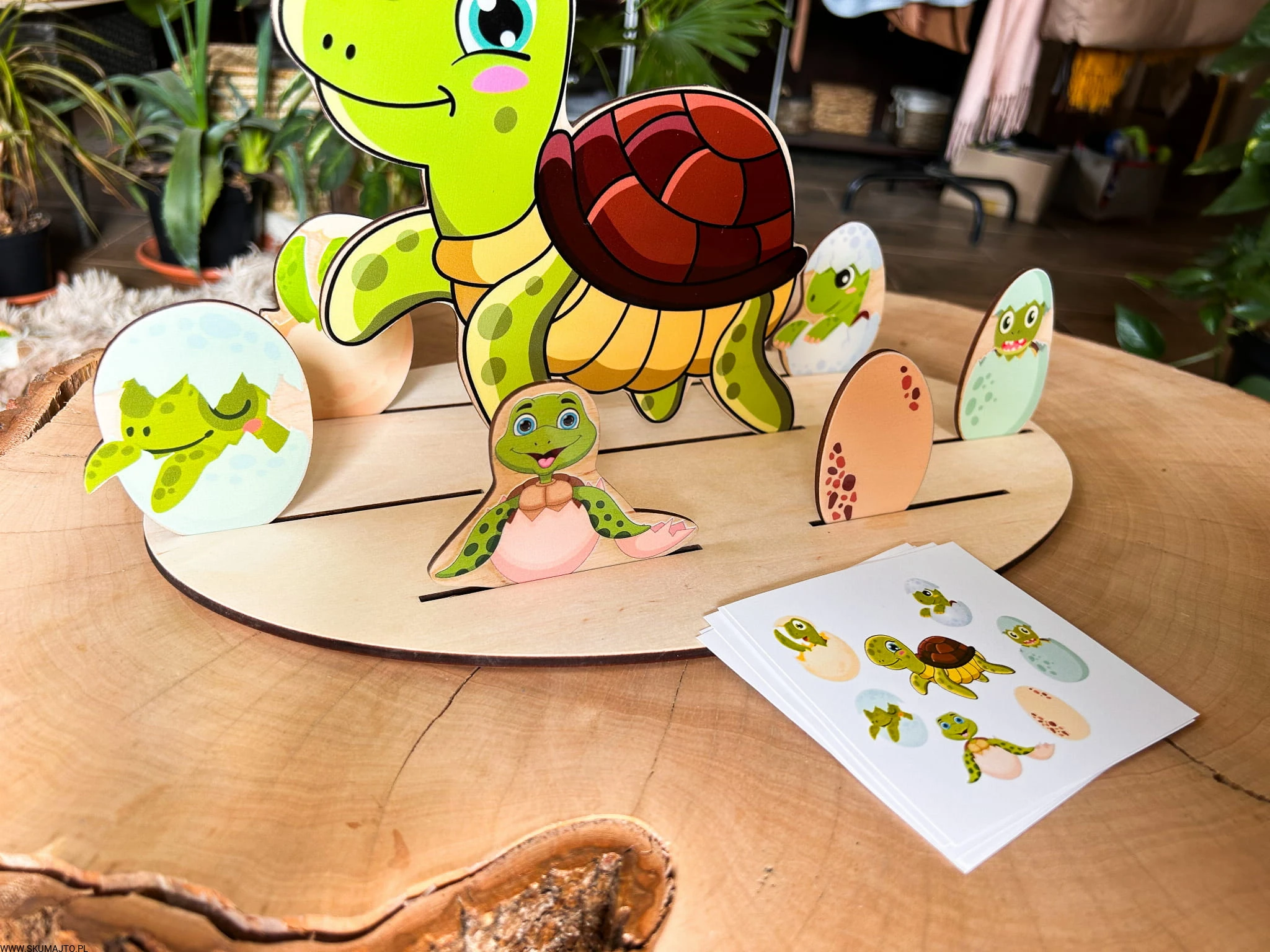- Drewnianą podstawę o wymiarach 35x25 cm, która imituje gniazdo żółwia morskiego