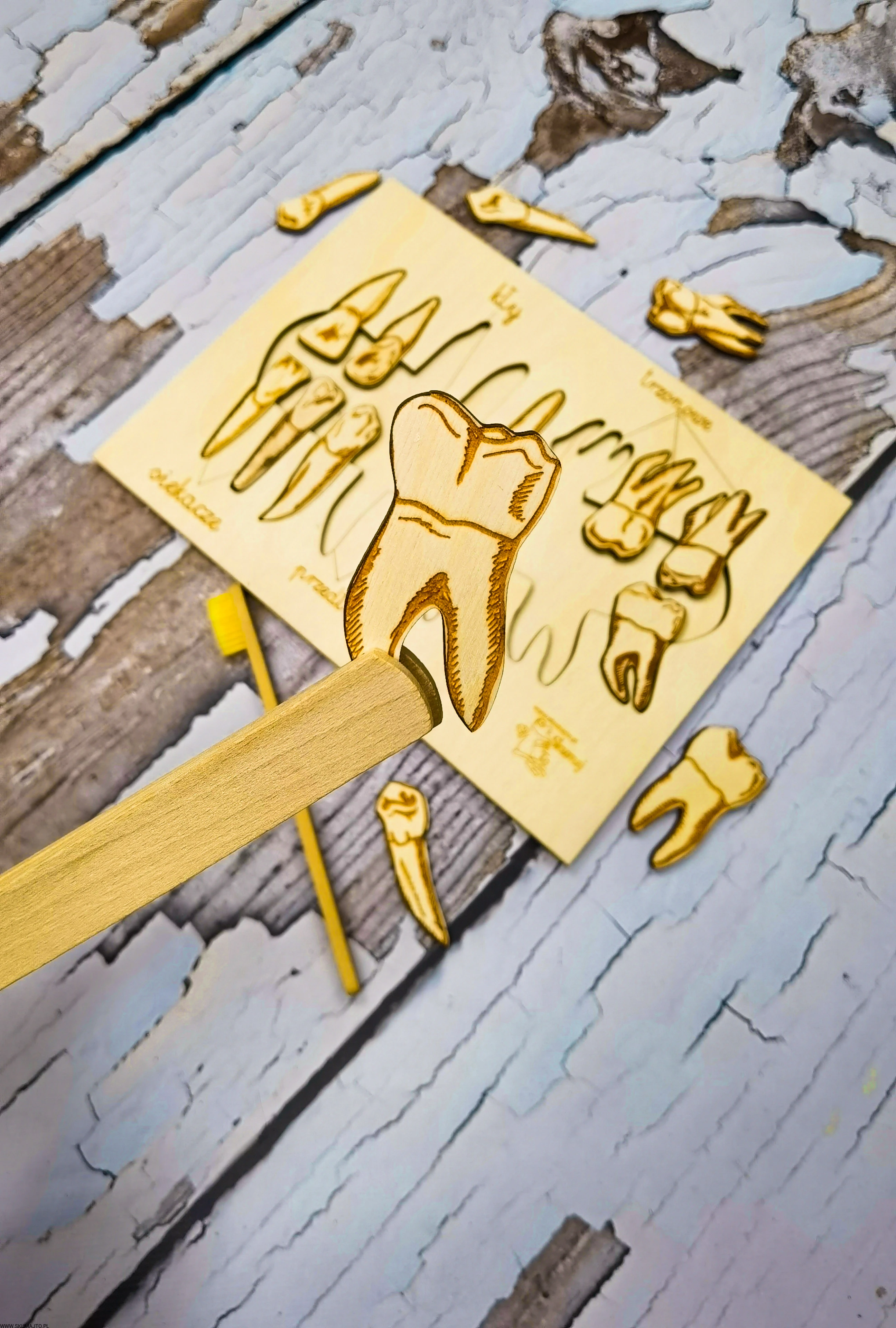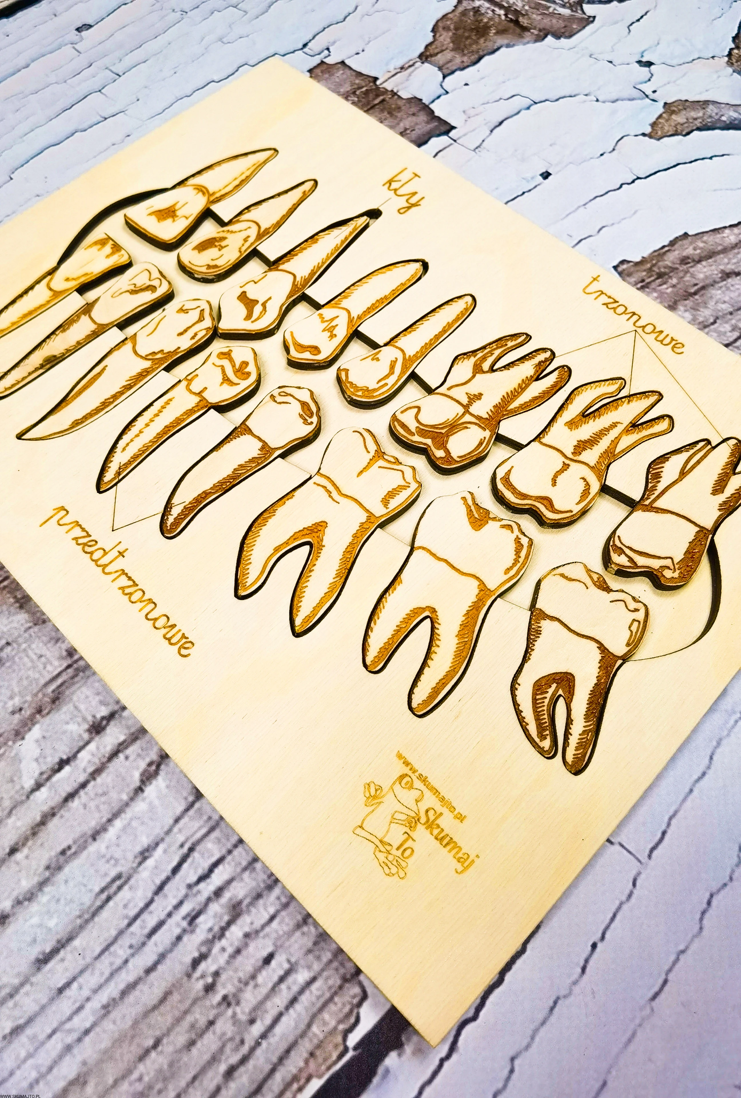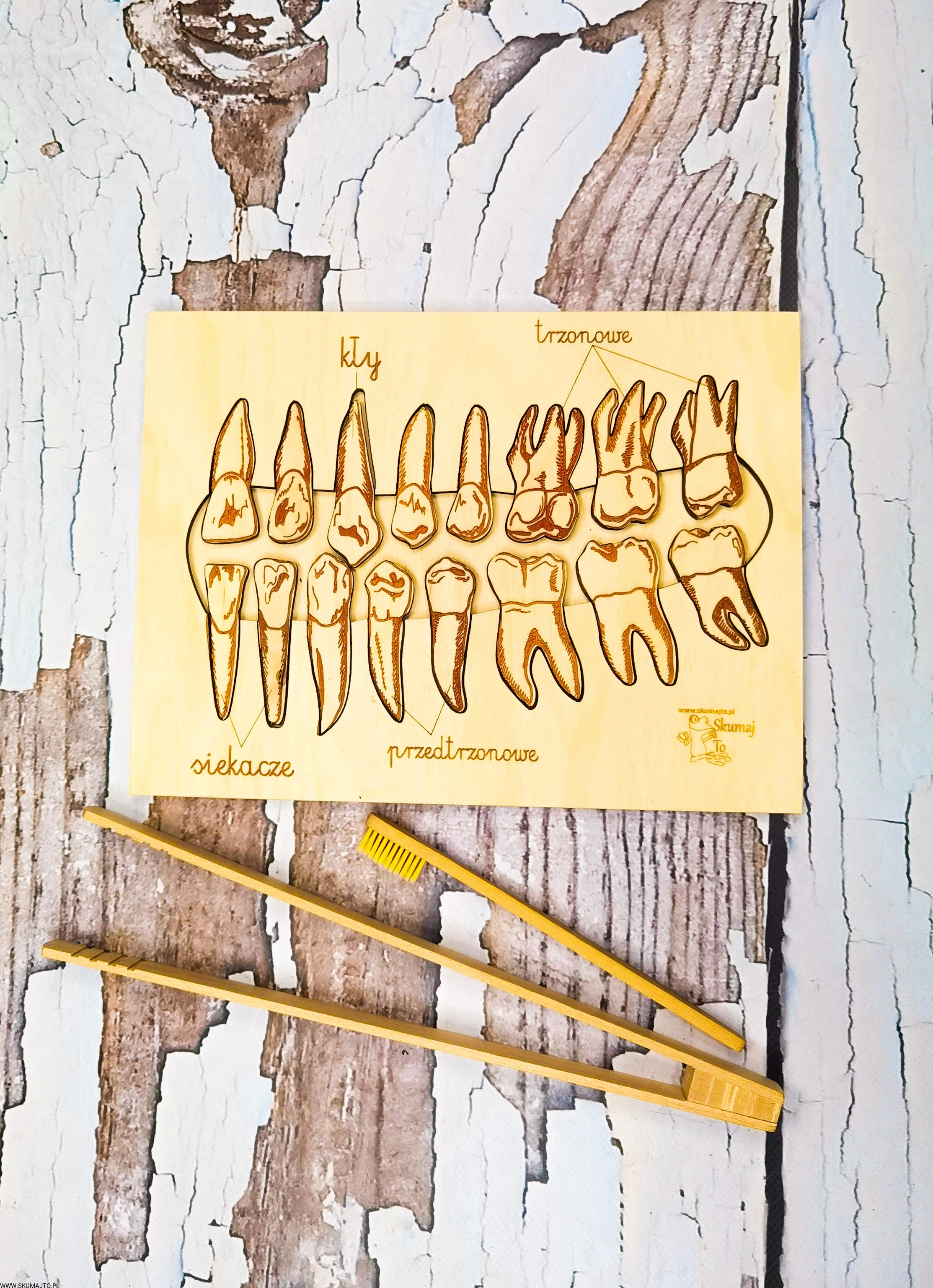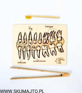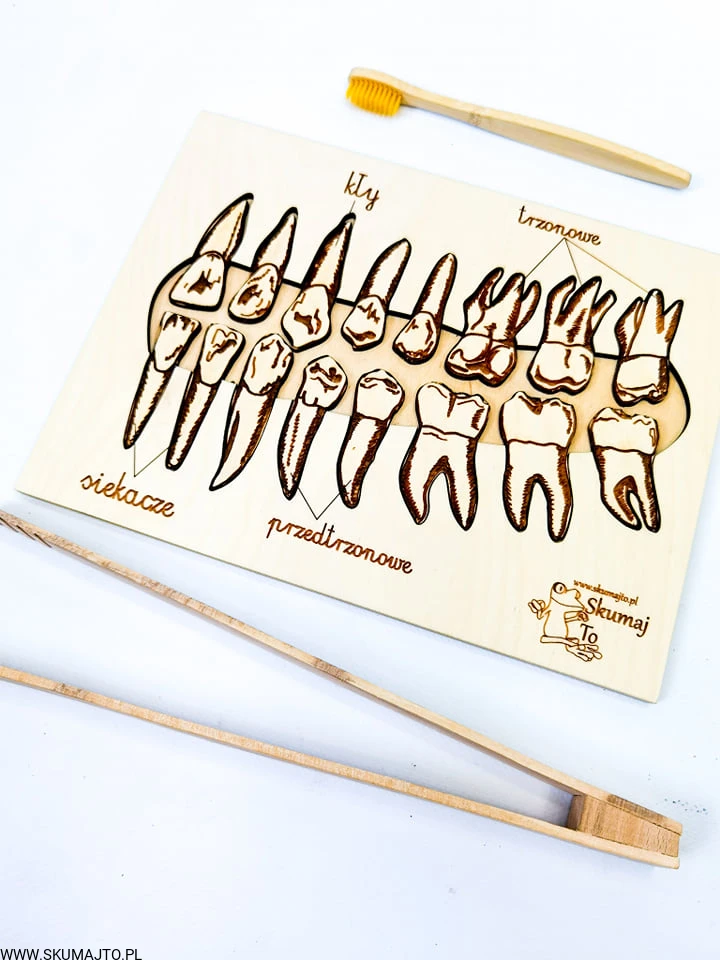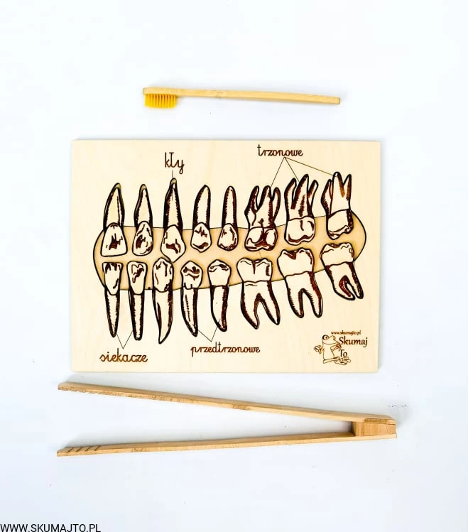 Rodzaje zębów, drewniana układanka, wyjmowane zęby