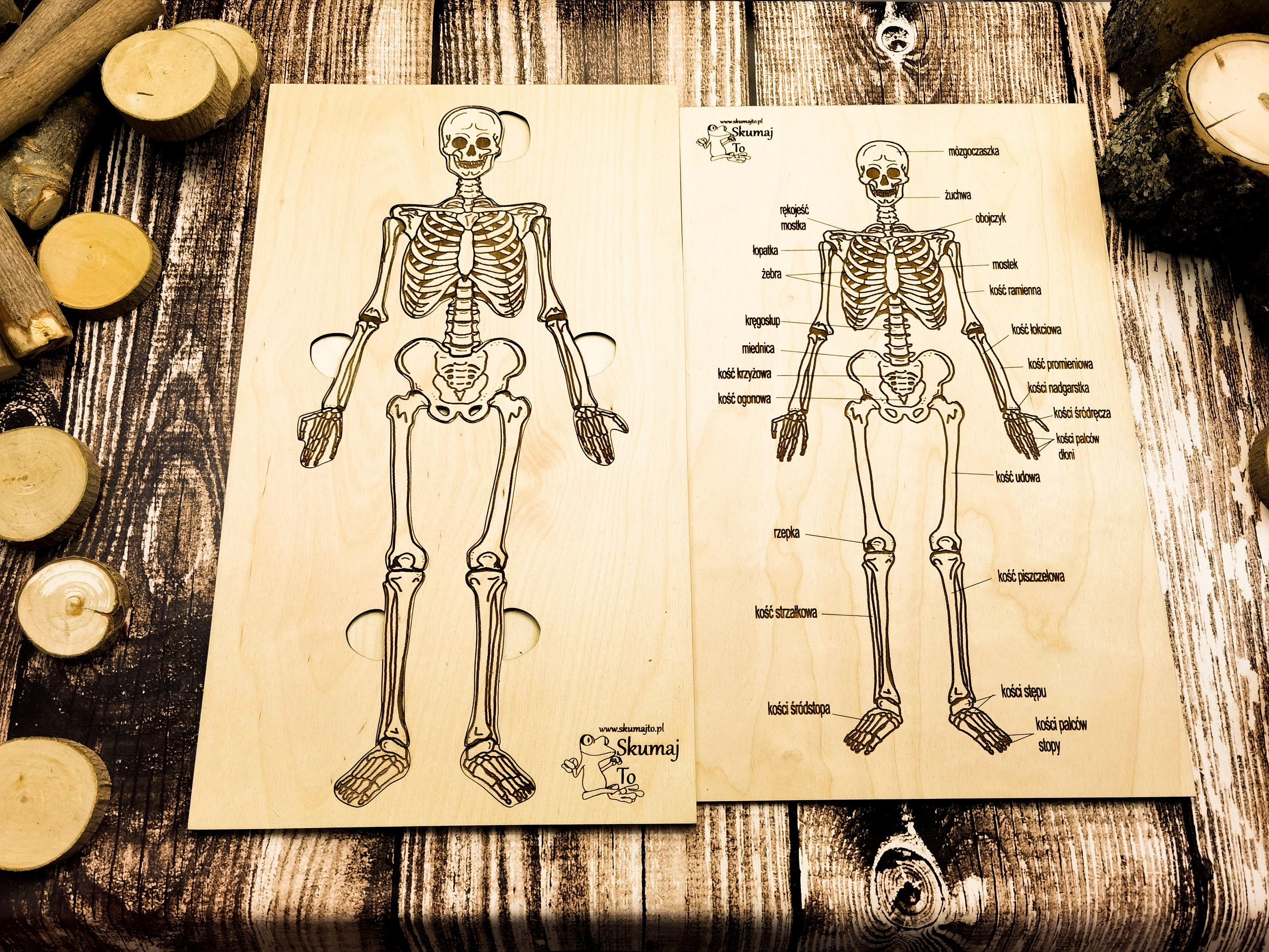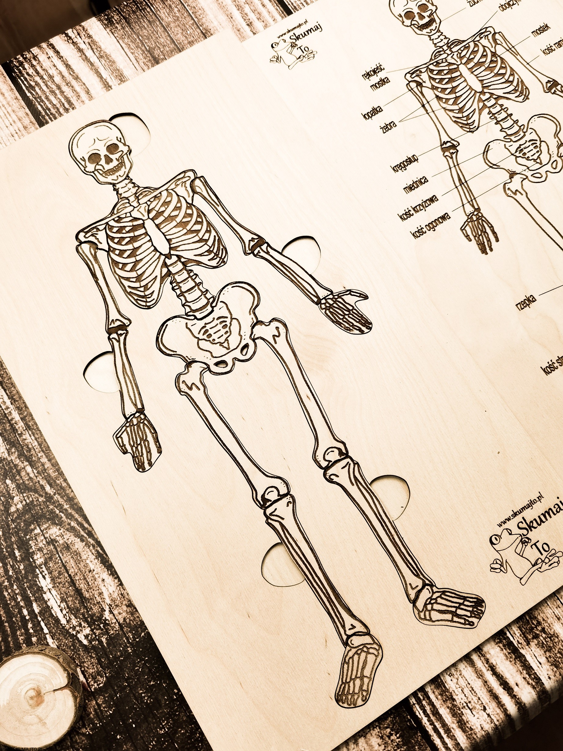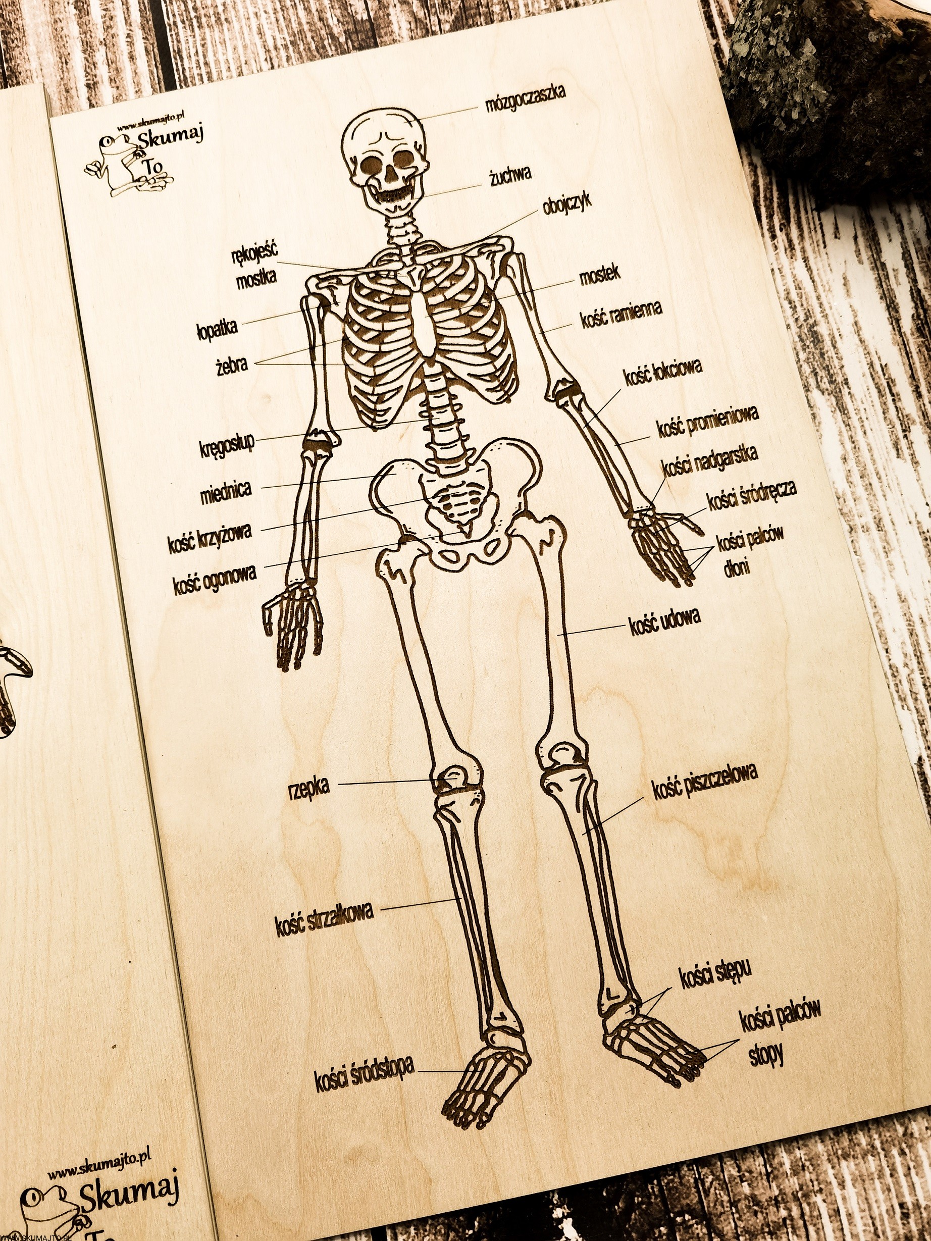 - Górna nakładka: z dokładnym opisem poszczególnych kości, która pomaga w identyfikacji i nauce.