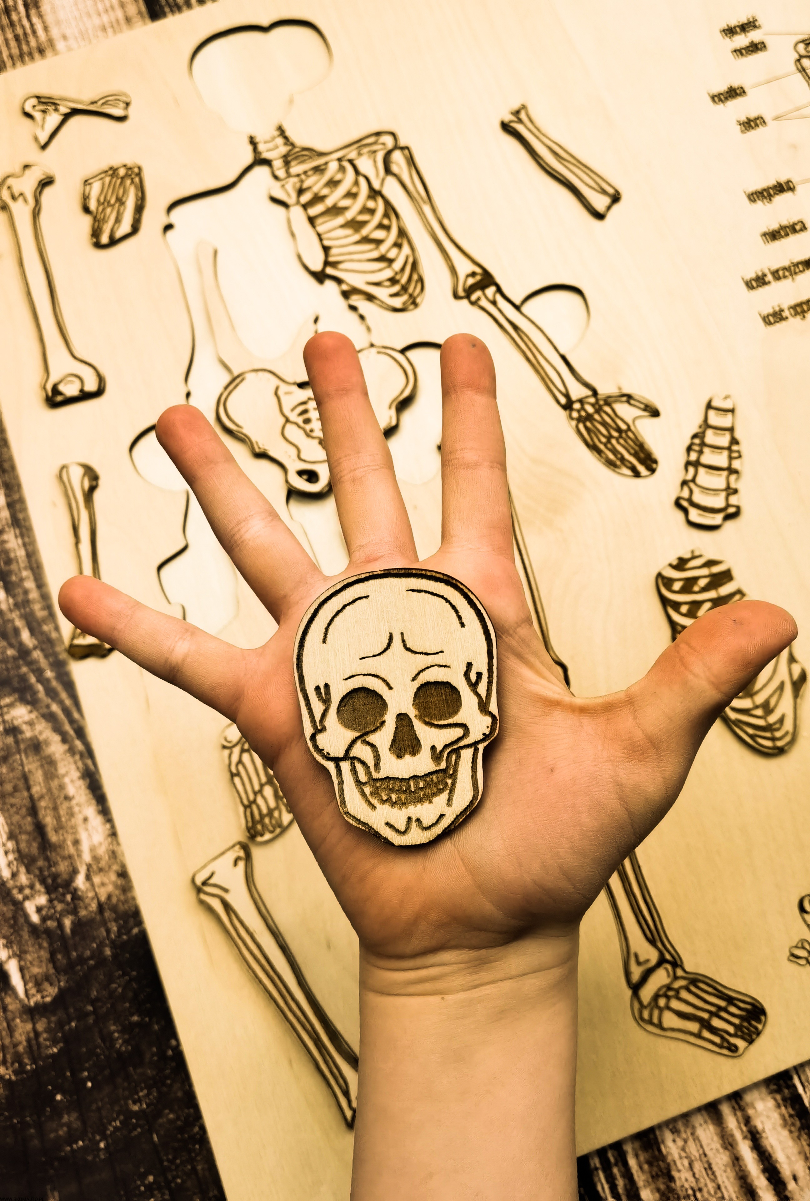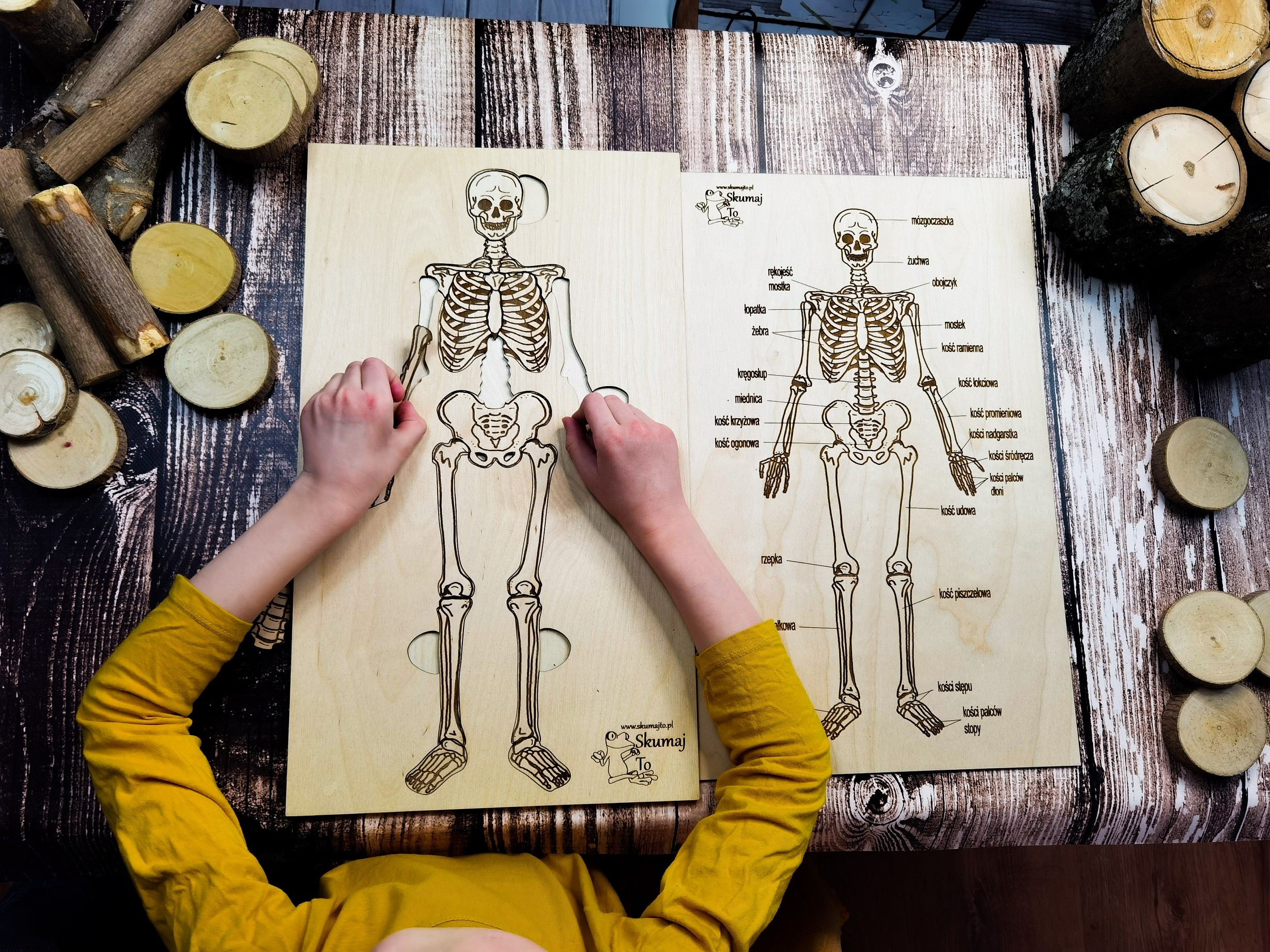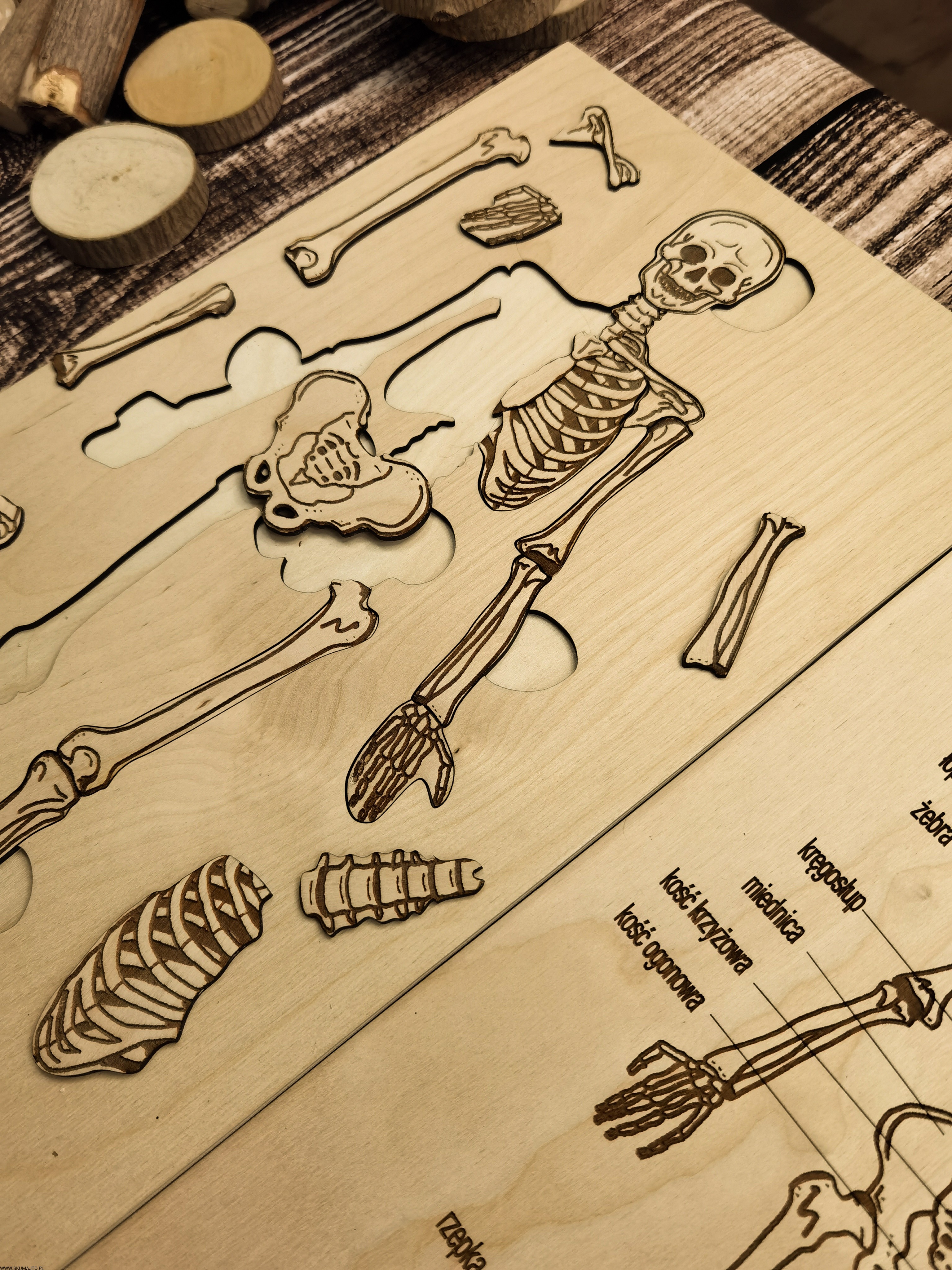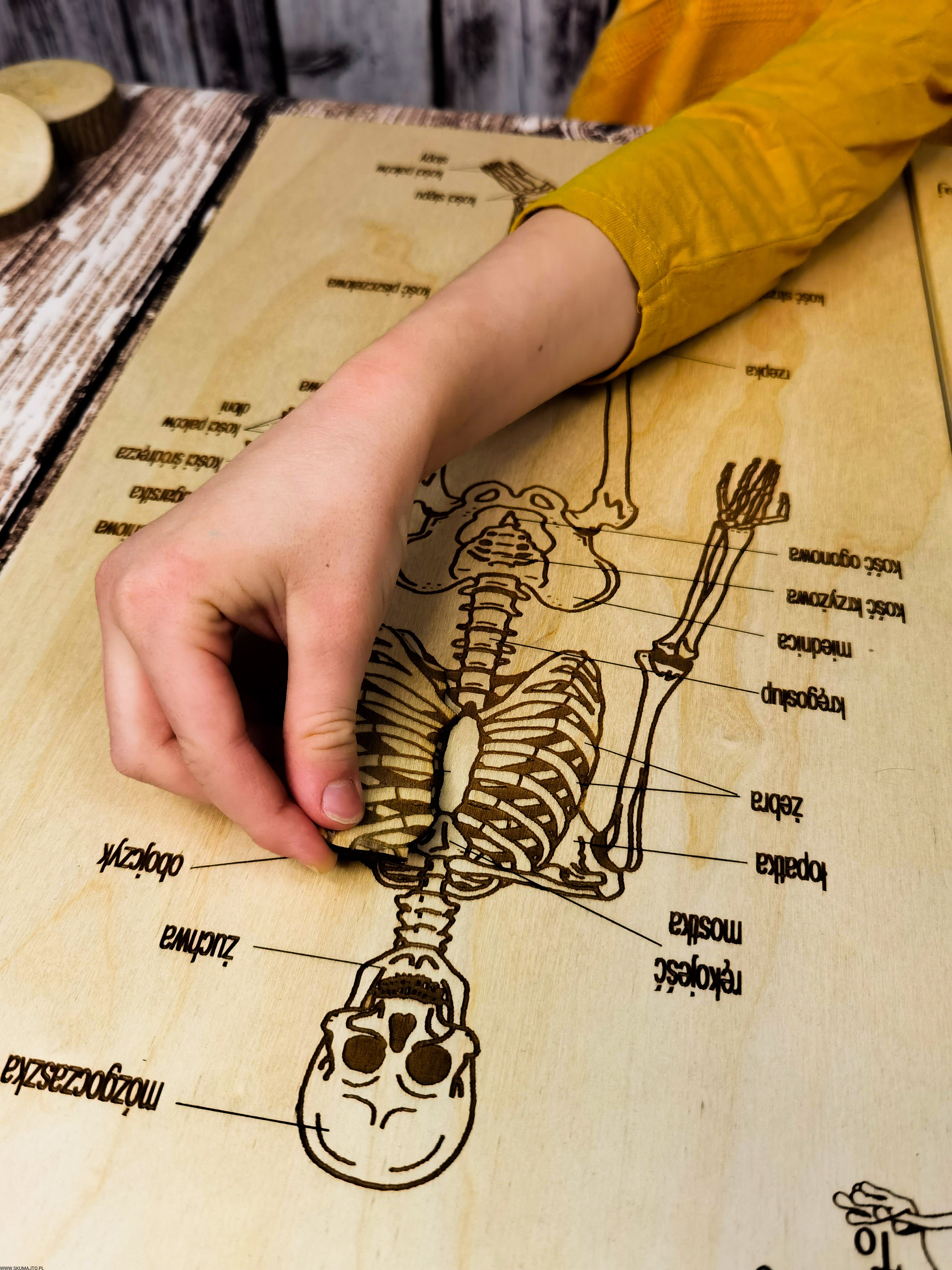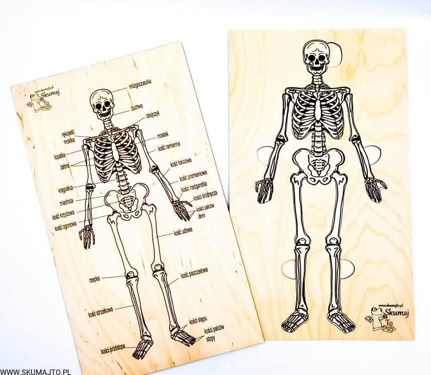Szkielet, kości człowieka, układanka drewniana, układ szkieletowy, wyciągane kości