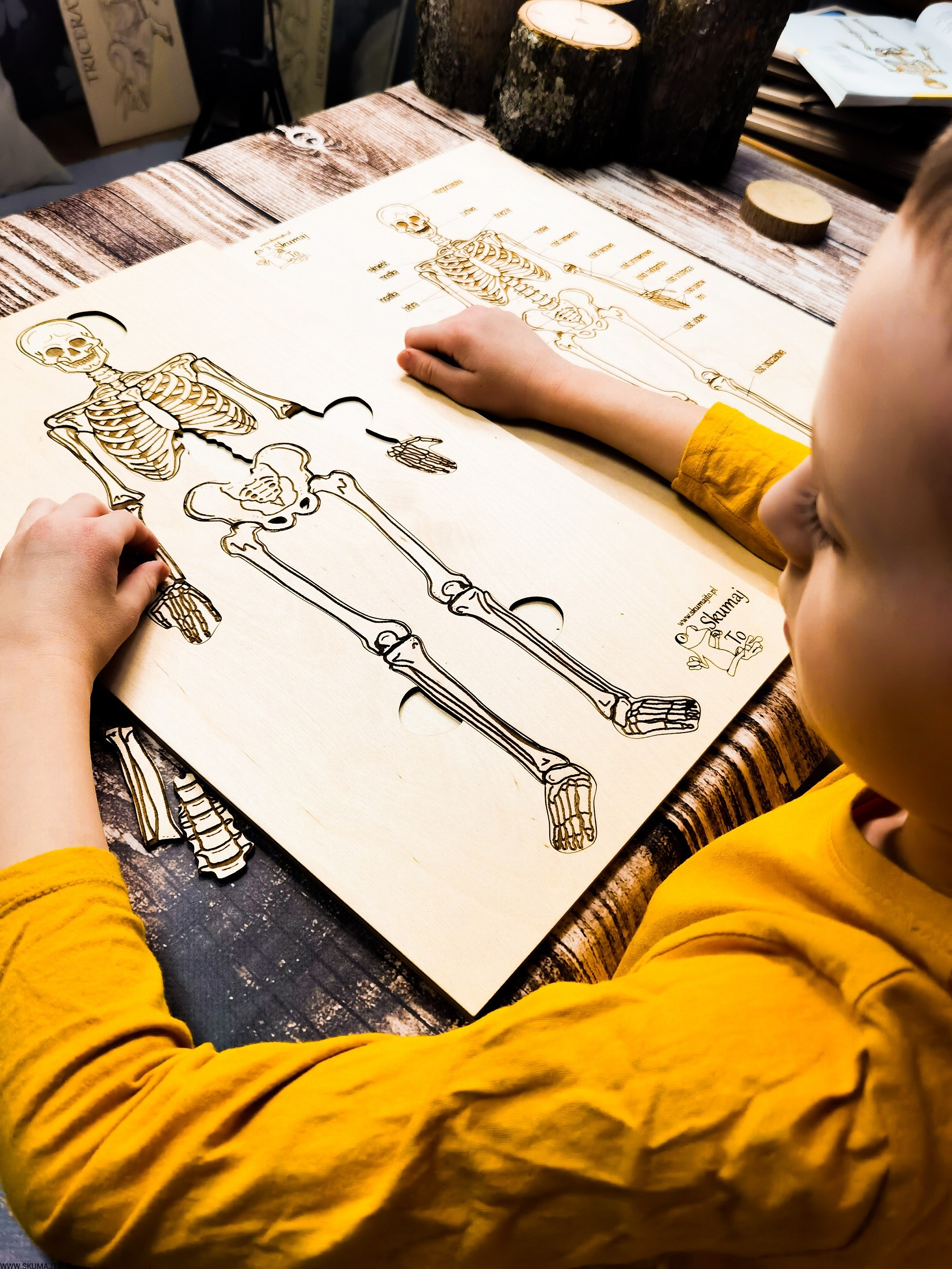 - Edukacja przez zabawę: Dziecko poznaje nazwy i układ kości ludzkiego szkieletu, ucząc się przez zabawę.